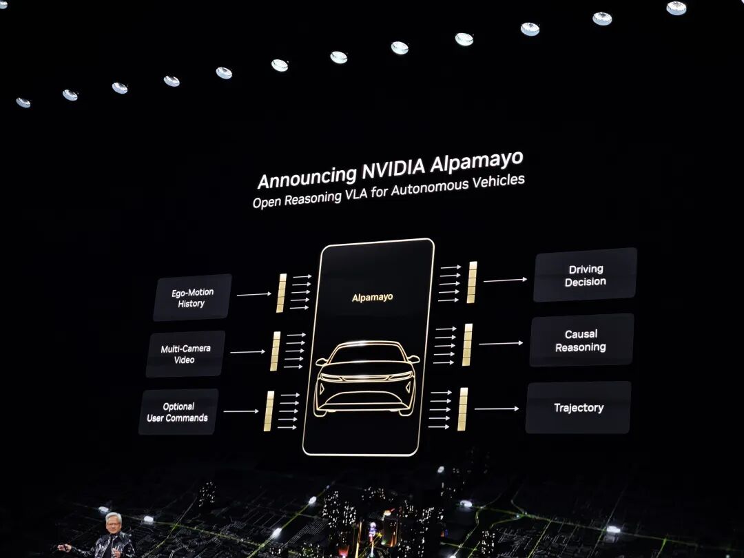 它关心的是如何用 Vera Rubin 搭建万亿参数的 AI 工厂,关心的是如何用 Alpamayo 操控路上的汽车和机器人。